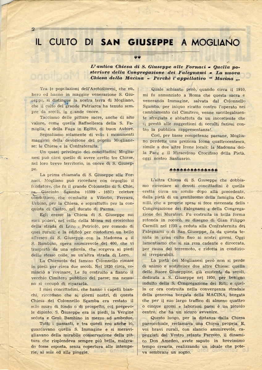 1652: the church is built as a will of Teodora Pizziculli, with her husband (Colonel Giacinto Sgamba) consent, on the streets that goes to Loro Piceno and Petriolo;