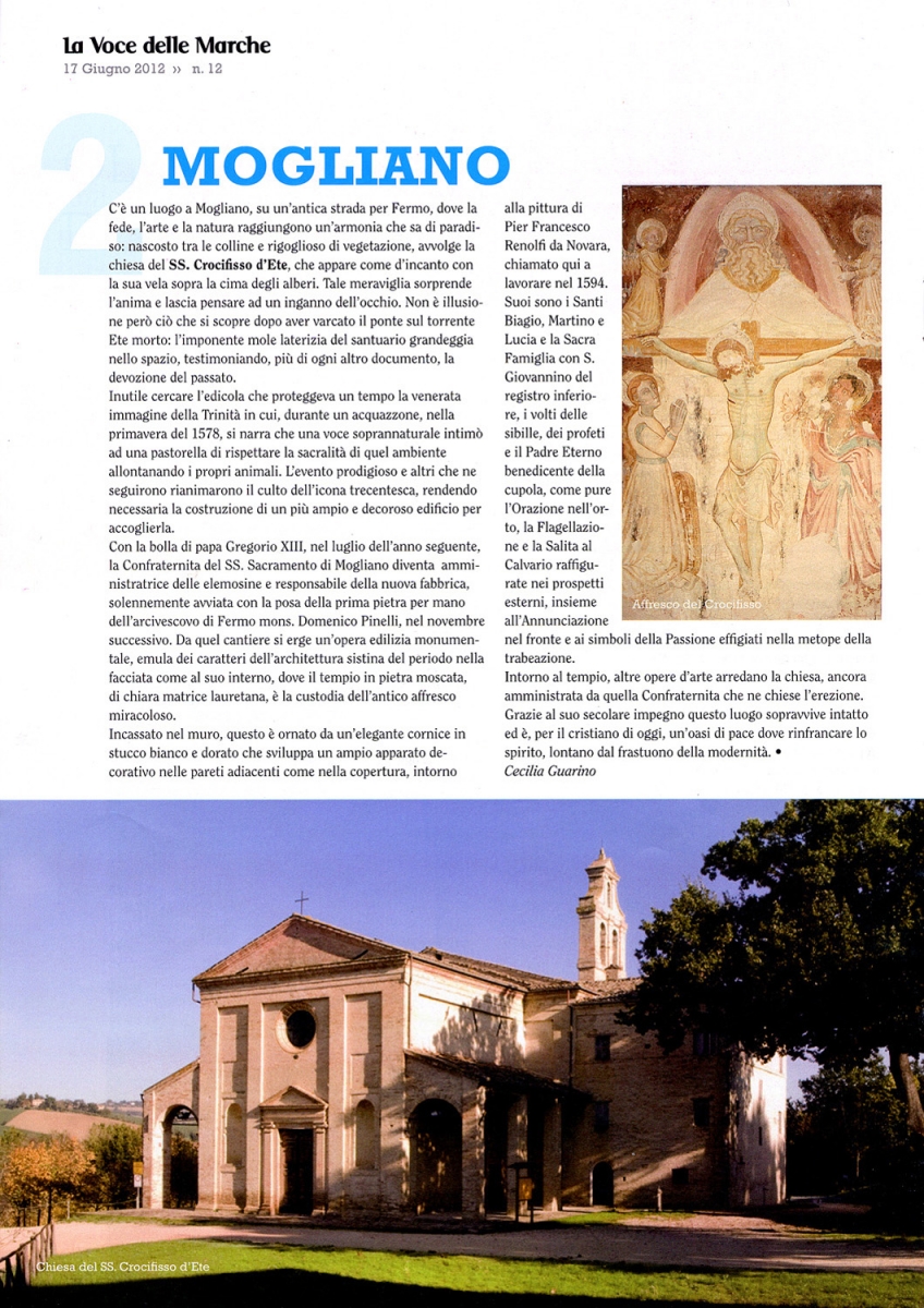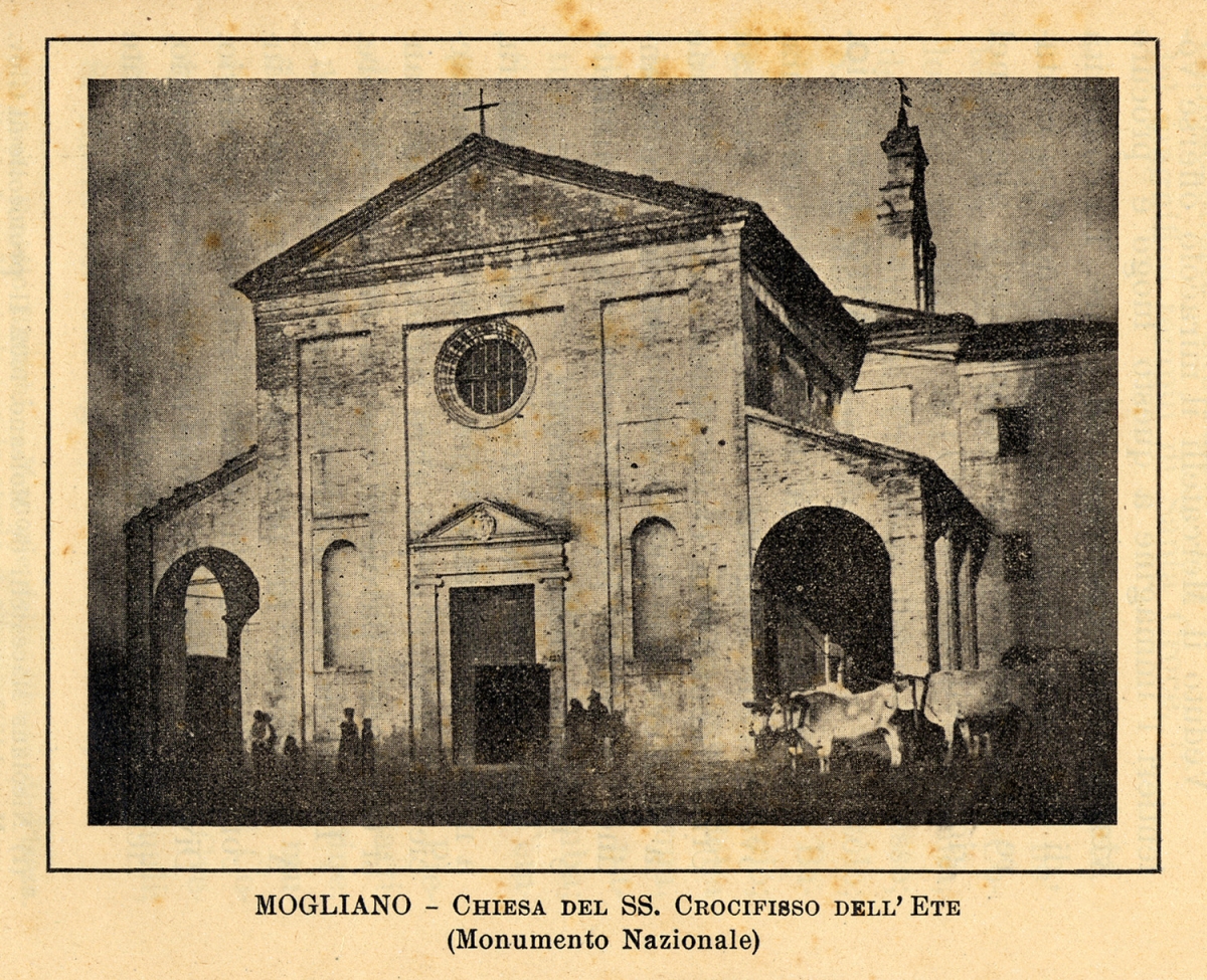 1579 - 1596: built by the Confraternity of the Most Holy Sacrament on the road to Fermo, nearby the crossroad between Mogliano and Francavilla d’Ete, in order to preserve and venerate the image of the miraculous Crucifix, coming from the nearby XVI century shrine;