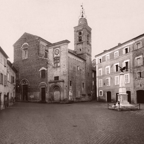 inizio XIX secolo: ha già sulla cuspide del campanile la campana del pubblico orologio, da tempo collocato alla sommità della cella camparia;